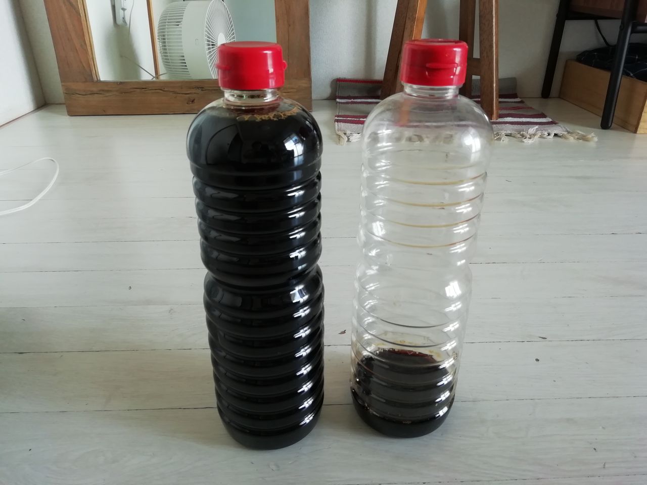 安いときに買いだめした醤油が2本。