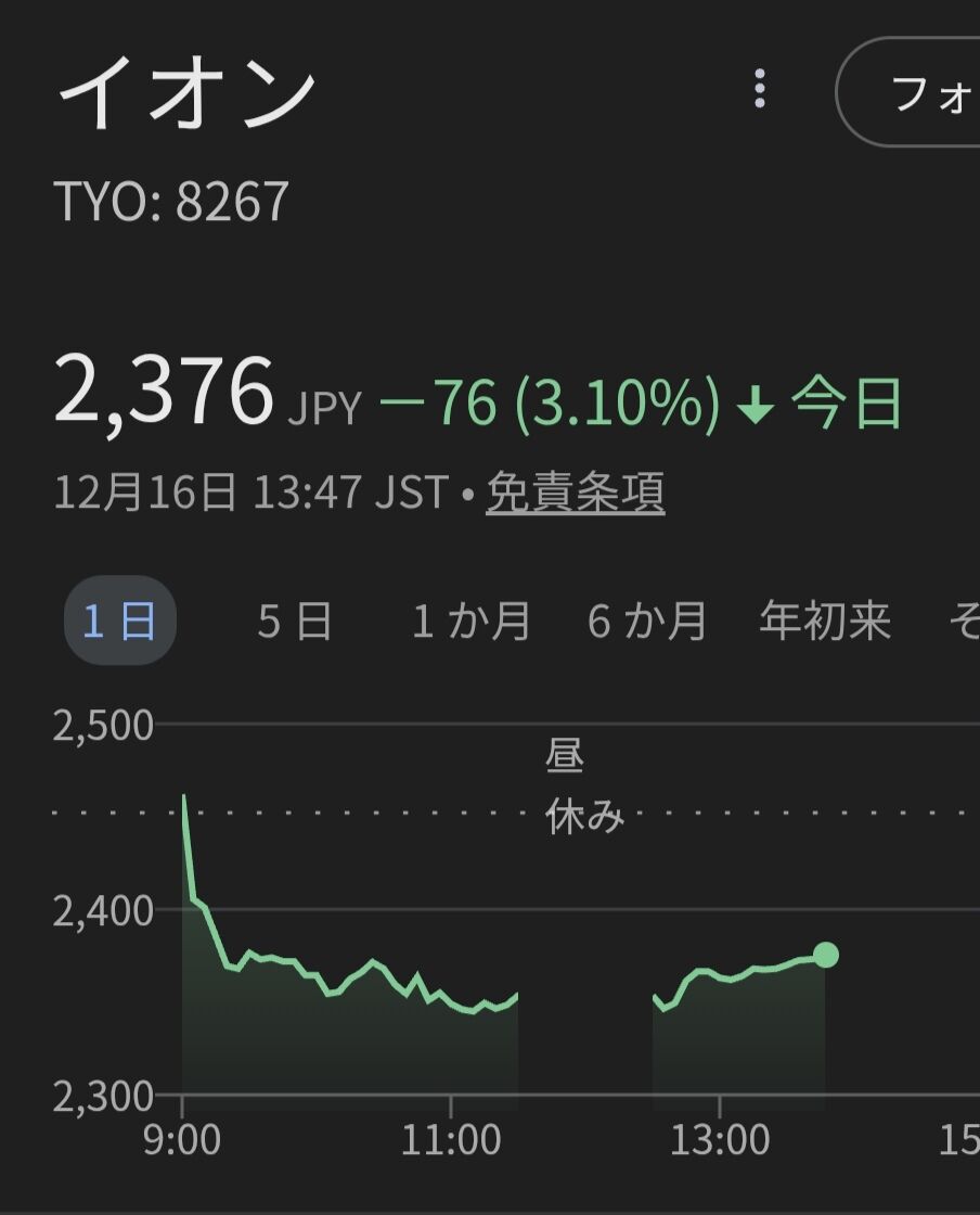 イオンの株価が