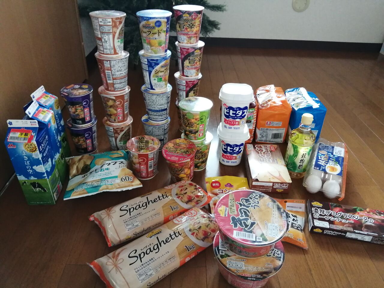 (半額シールの牛乳含む)