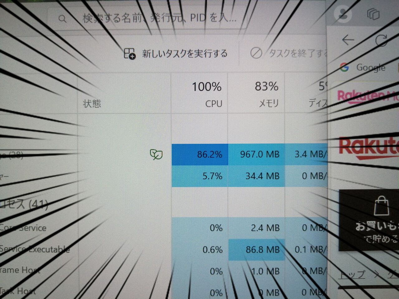 と思い、タスクマネージャーを