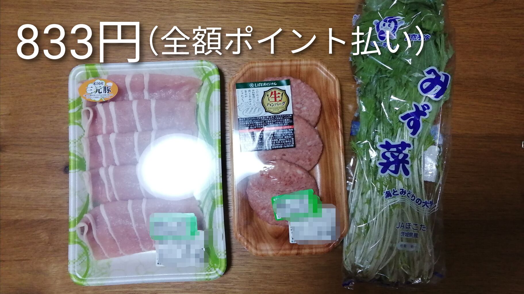 使った総額・833円