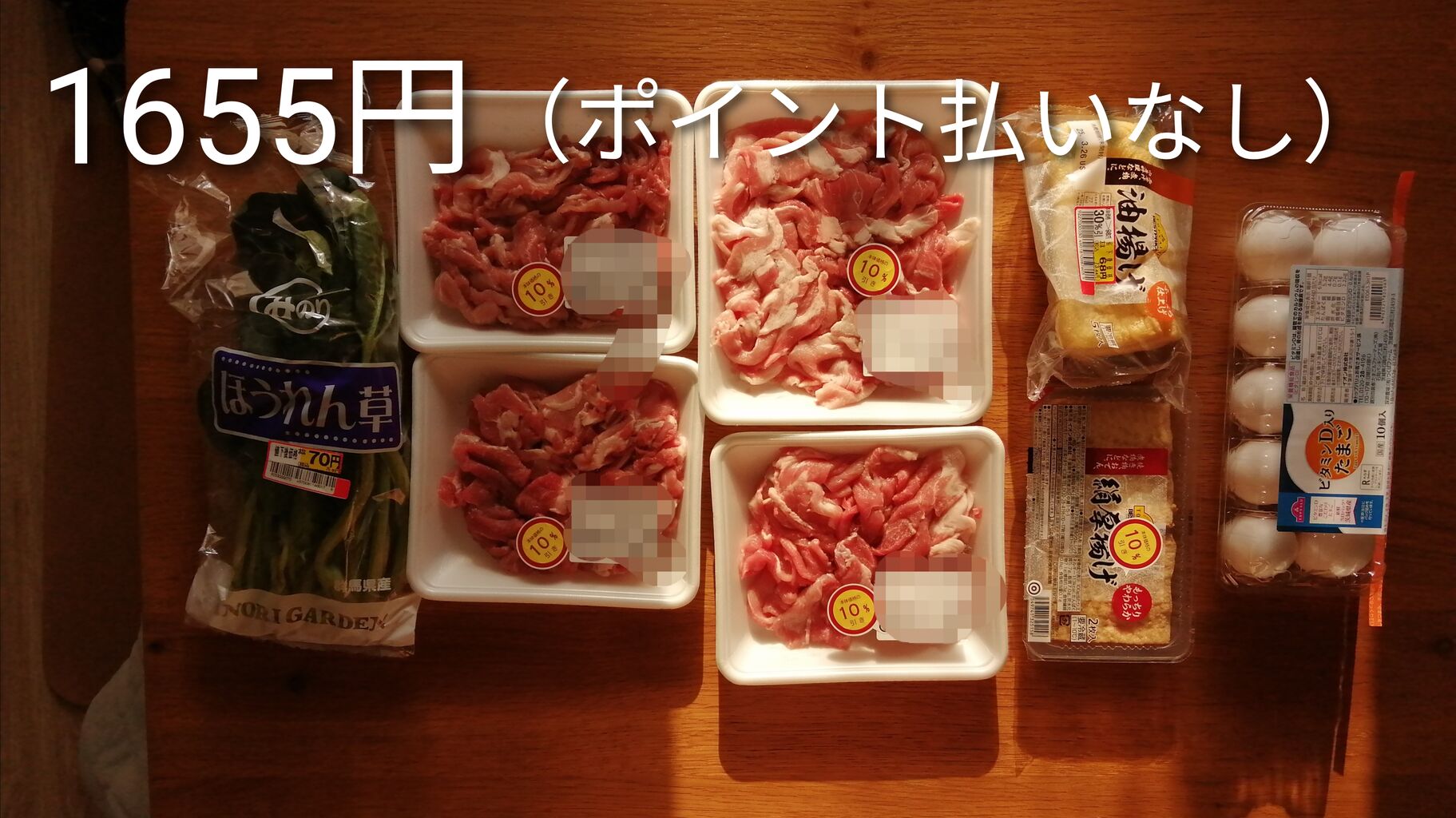 g98円の豚肉を10%オフで買った記憶。