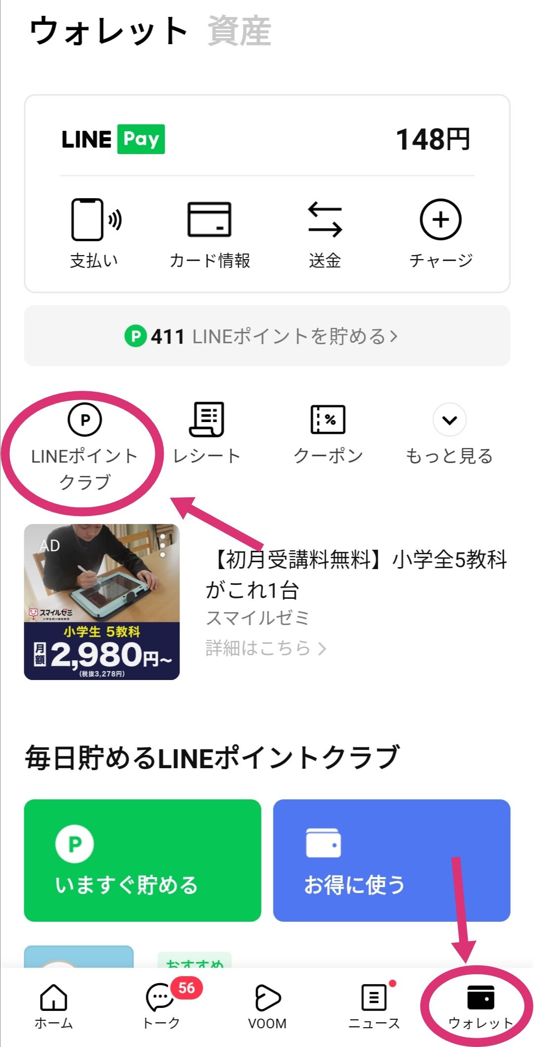 LINEポイントクラブってとこタップして
