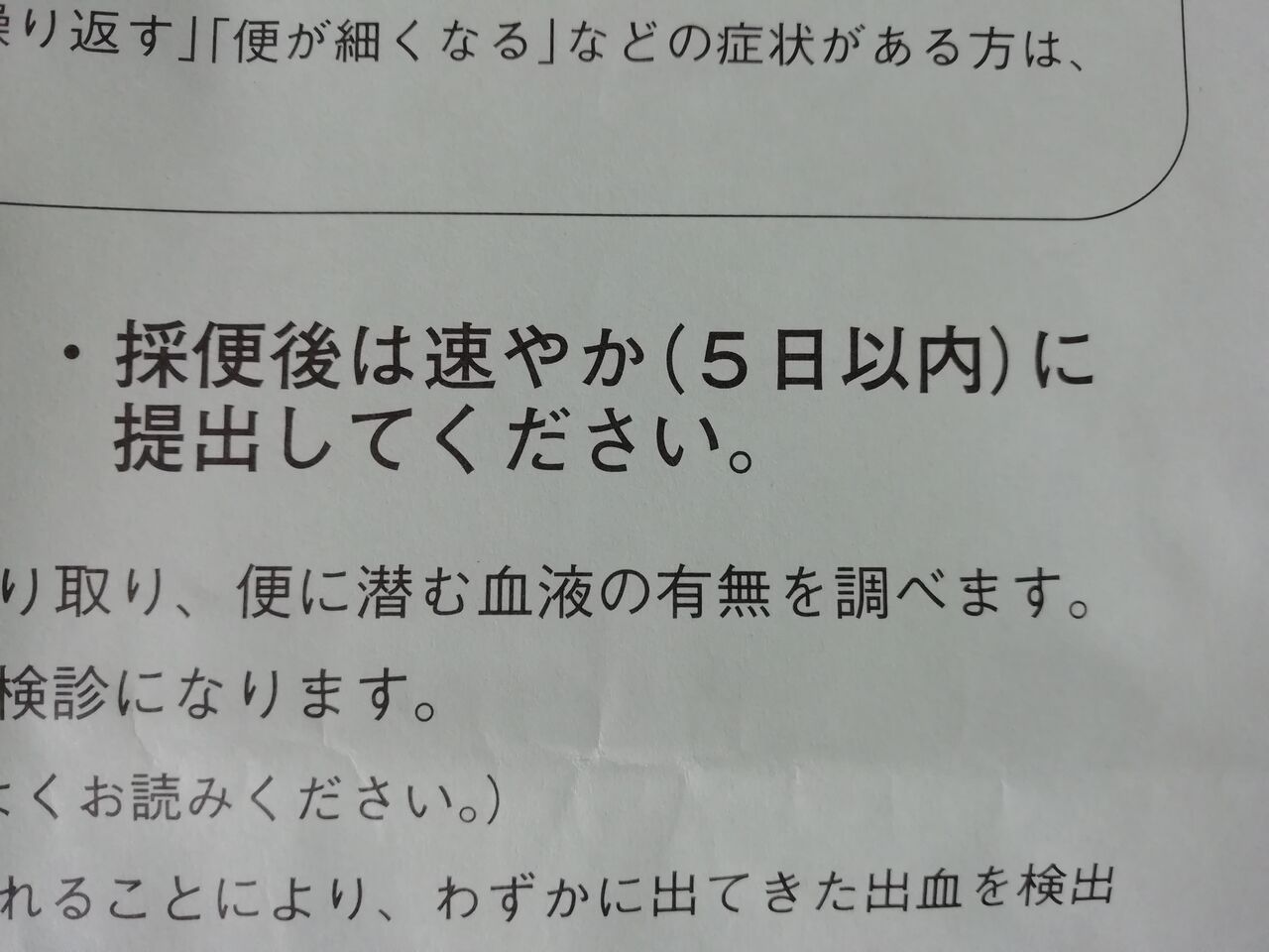 便中の血液を調べる検査。