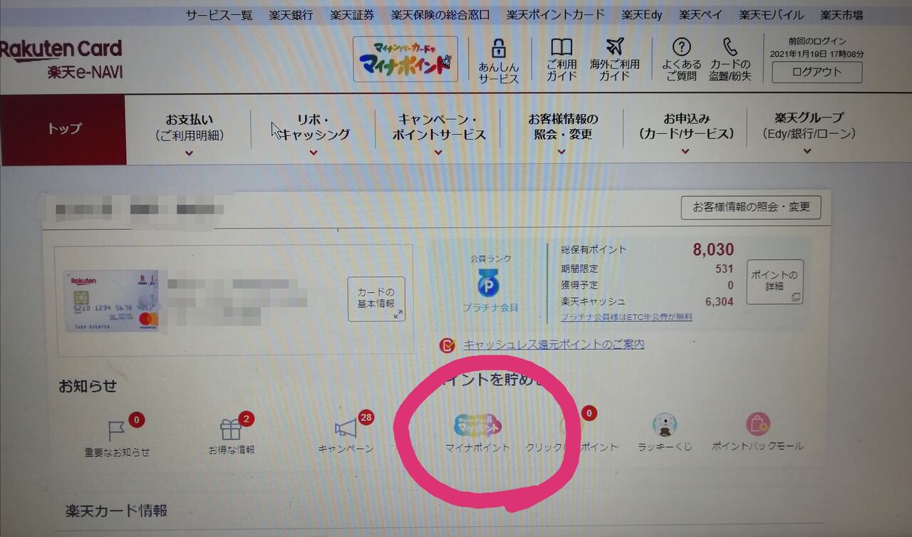楽天カードやった。