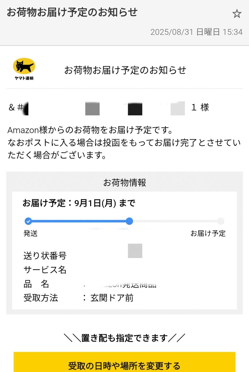 と思いクロネコからのメールをよく見ると