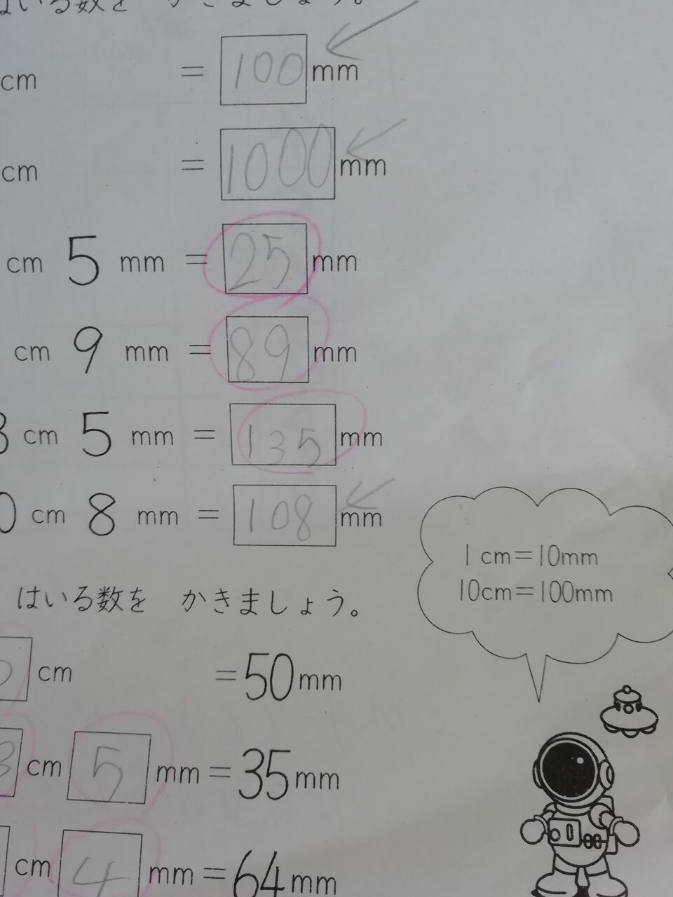 丸付けして間違ってるとこに
