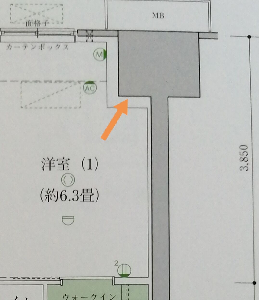 個室の柱がせり出してたりで