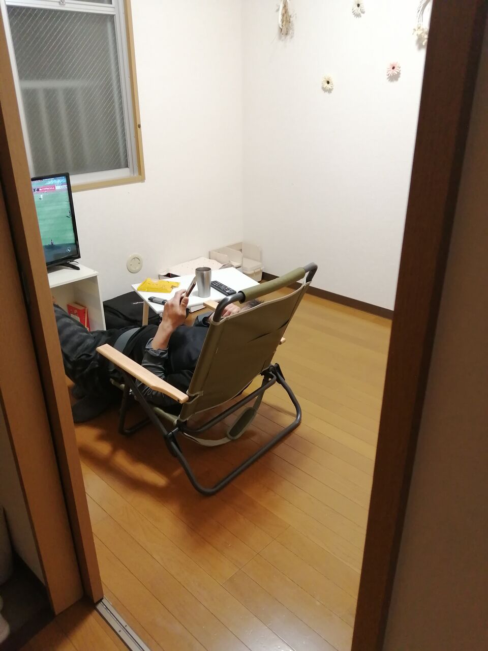 疲れ切った様子で帰ってきて
